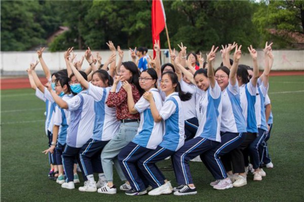 高考前玩得最后一场集体游戏,他们兴致高昂,配合默契,“观战”的同学放声呐喊,为他们加油助威。