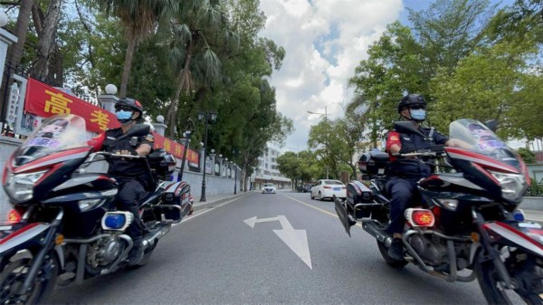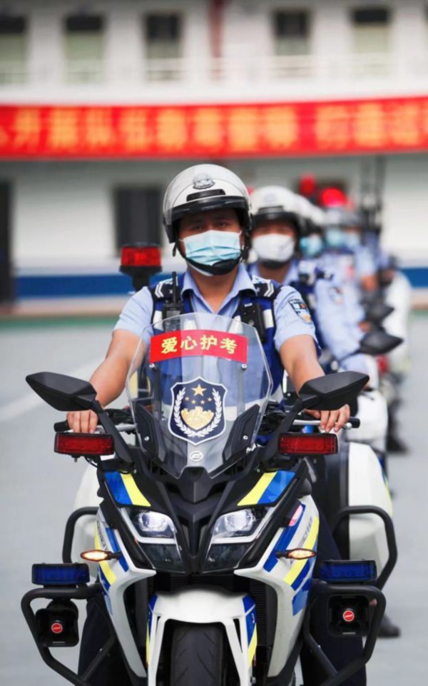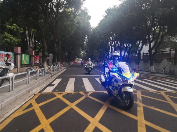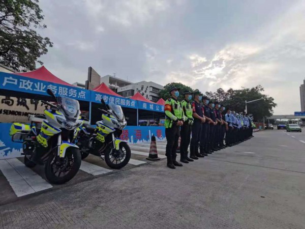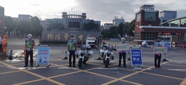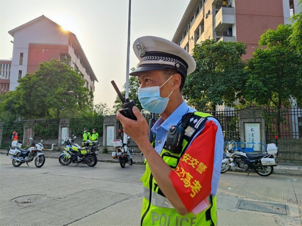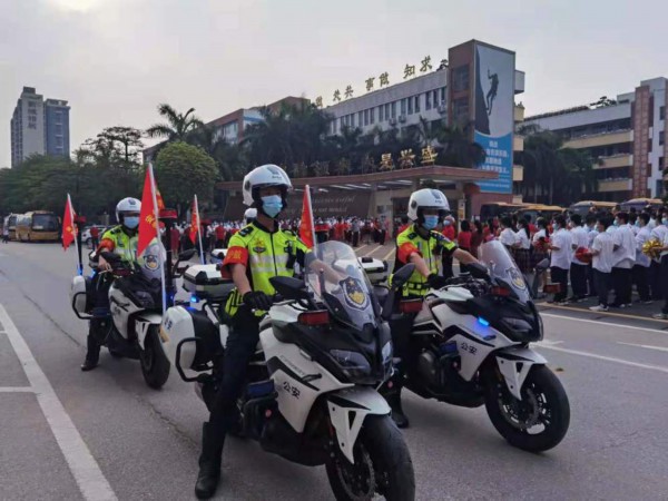 为确保考生接送中的安全准时,广州公安民警全力以赴保驾护航