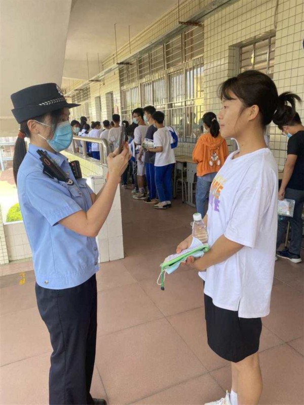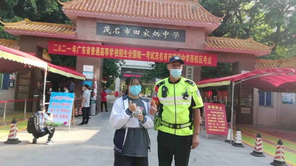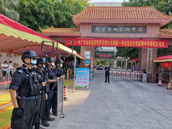 茂名民警在考场护考。女儿高考,父亲坚守岗位