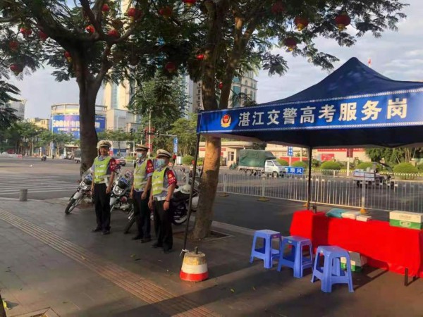 湛江市公安局交警支队霞山大队全警到各自管辖考点就位,树立警示牌、拉隔离带、部署警力。通过设置“绕行标志”、“减速慢行”、“禁鸣喇叭”提示牌提醒过往司机注意,对考场周边影响考生考试的场所和道路进行了管制,为考生提供安静、舒适的考试环境。同时加强对考场及周边道路交通管控,指挥过往车辆随停随走不停留,提醒路过考试路段的司机不鸣笛,同时引导接送考生的车辆到指定地点有序停放,确保考生安全及时到达到考点,接送车辆进出畅通。为广大考生营造良好的道路交通环境。