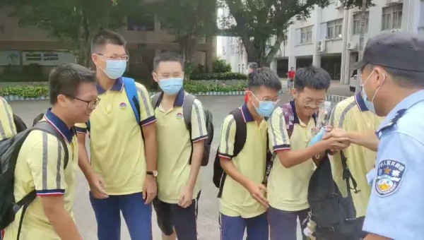 高考安保,不止是护航!东莞大岭山分局组织为学生加油鼓劲,一个个击掌,一声声祝福,令考生们情绪高涨,信心百倍。