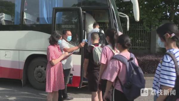 今天(6月7日)上午7点,记者在高考考生的住宿点之一江阴市委党校内见到,几辆接送考生的大巴车已经停在了指定位置,司机正在做消杀、清扫工作。7点45分,江阴市青阳中学的考生有序排队接受测温、登记后,方可登上大巴车。据悉,考生由所在学校负责从考前14天开始,每日体温测量、记录并进行健康状况监测并登记留档,如期间发生咳嗽、发烧、腹泻等症状,需前往指定的医院就诊,待医生出具复课证明后方能返校备考。上午8点,考生陆续抵达考场,送考老师把体温登记表上交后,考生即可入场。