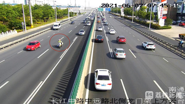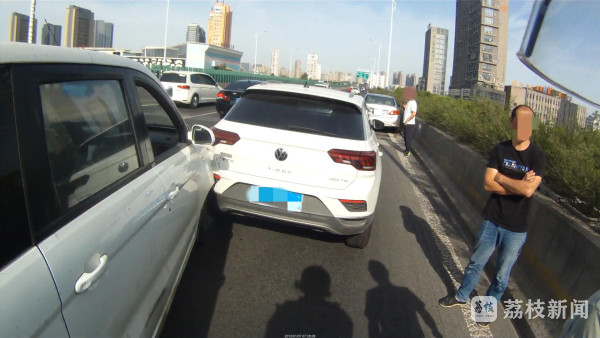 上午7点半左右,在南通市崇川区北大街路口正上方的江海大道高架上,由东往西方向发生了四车追尾交通事故,南通市公安局交警支队铁骑队队员张伟迅速赶往处置。