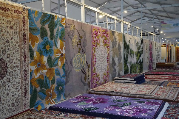 △第18届中国(青海)藏毯国际展览会上展出的藏毯。(总台央广记者潘毅拍摄)