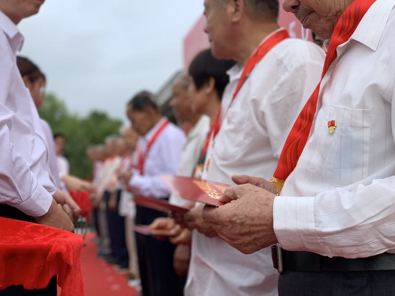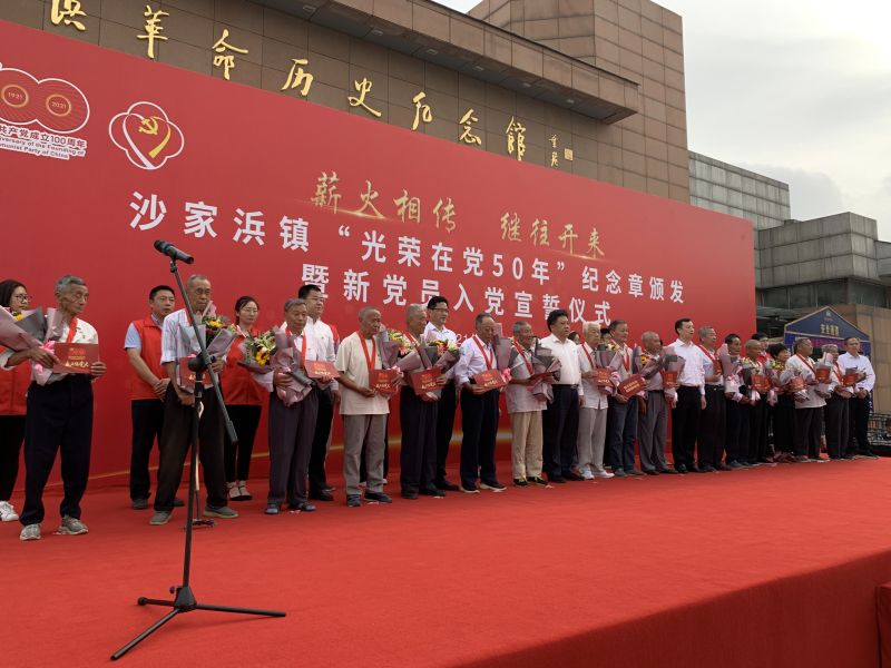 6月8日,“薪火相传 继往开来”——沙家浜镇“光荣在党50年”纪念章颁发暨新党员入党宣誓仪式在沙家浜党性教育基地纪念馆广场举行。新老党员传承初心使命,凝聚起高质量发展的强大力量。