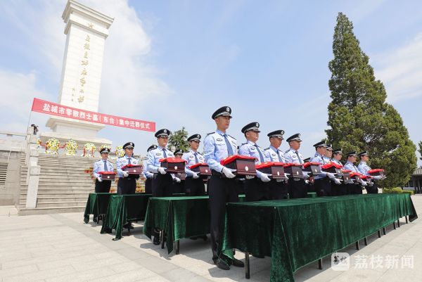 青松翠柏慰忠魂,白菊黄花寄哀思。今天(6月9日)上午,盐城市在东台三仓举行零散烈士墓集中迁葬仪式,36 名烈士的骨骸从东台全市各地迁移到了三仓烈士陵园。