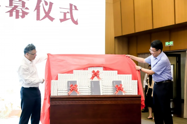 ▲国家图书馆党委书记、副馆长魏大威和常熟市委书记周勤第为《常熟文库》新书揭幕