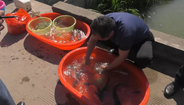 “五条、十条!”“完全合格!”……6月6日8时许,在第一个投放点内,盐城市水产技术推广站的工作人员正在对此次放流的鱼苗进行随机抽样计数和规格查验,以确保鱼苗数量和规格均符合放流要求。盐城市水产技术推广站研究员李平介绍:“我们主要是在每个批次的苗中抽取50至100条,进行‘量体称重’,符合要求的苗才能放流。在千秋这个放苗点,一共放流白鲢、鳙鱼8266斤,经公正测算约2万尾。”经过检测,合格的2万尾鱼苗被货车运送至码头,随后工作人员按要求进行放流。