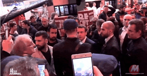 这个年轻人为什么要打马克龙?或许从他喊的口号能够找到一些线索。
