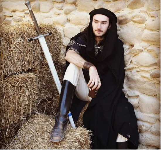 而在达米安被捕后,人们在他的社交媒体上看到,似乎他正是一名中世纪历史和军事的爱好者。比如,他上传过一张照片:自己打扮成骑士,身边放着一把长剑。