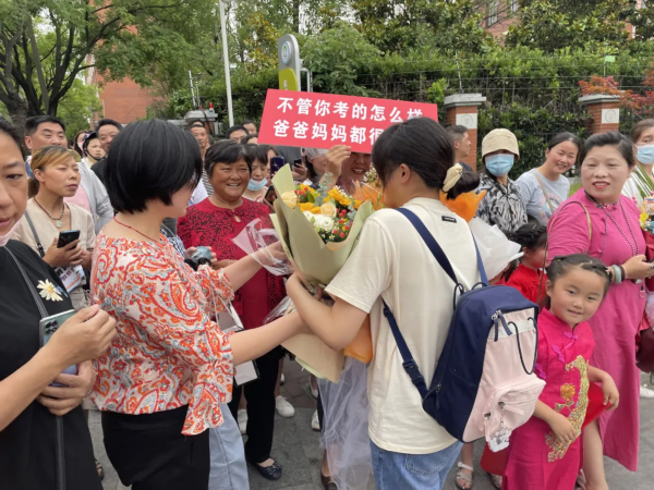 用鲜花和拥抱迎接考生