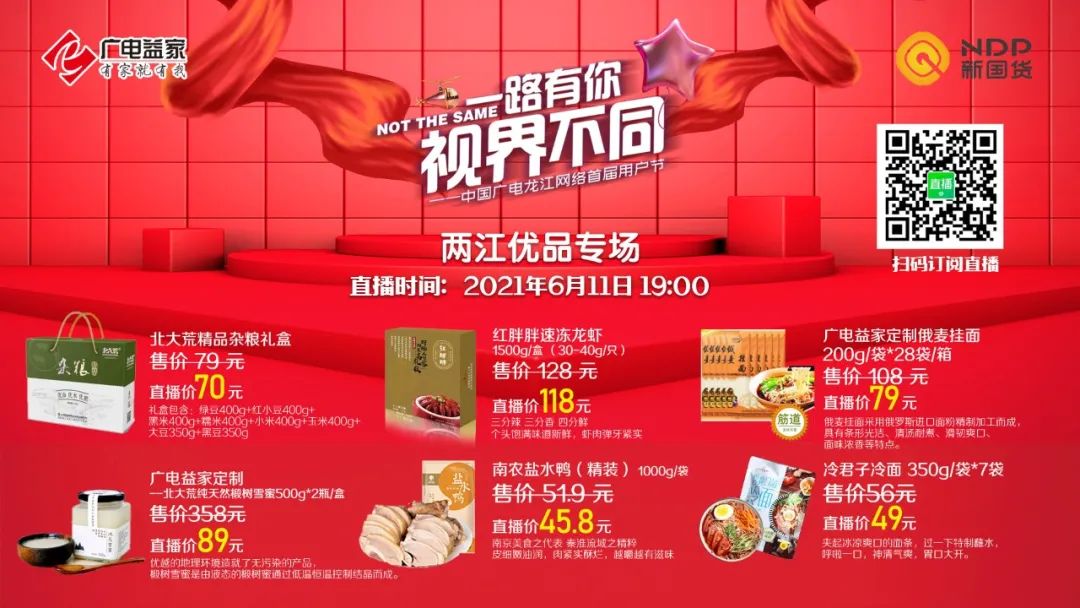 6月11日,“一路有你 视界不同”——中国广电龙江网络首届用户节将正式启动,以线上直播的形式打造黑龙江、江苏“两江优品专场”。
