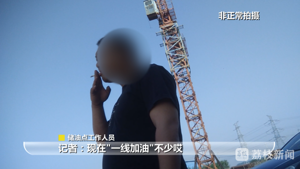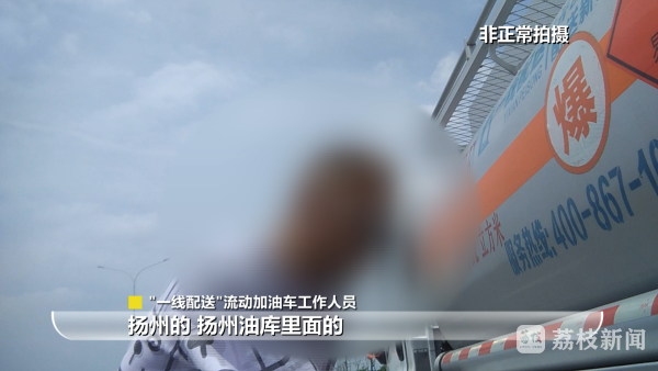 根据知情人的指点,5月29号记者来到355省道泰州泰兴市元竹乡境内,只见路边违停着一排大货车,一台写着"一线配送"字样的流动加油车,正在给过往车辆加柴油,记者自称有车辆需要加油,并询问油品的来源,对此工作人员含糊其辞。工作人员说:“扬州油库进的吧,人家送过来的。”