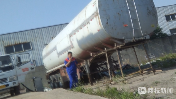 不光是随意停靠路边,5月29号晚上10点左右,记者在盐城东台市溱东镇一家饭店的停车场,发现了这台悬挂外地牌照的流动加油车,车身上写着“一线加油”的字样。