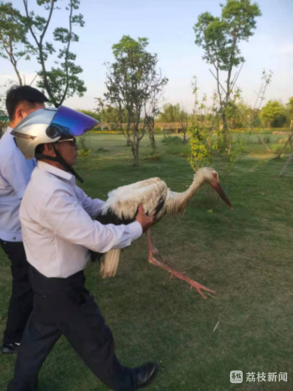 另一方面,民警积极联系建湖县林业局等有关部门。经林业部门工作人员仔细查验,确认该白鸟是国家一级保护动物——东方白鹳,同时确定该鸟是在迁徙途中意外受伤的,排除了人为捕杀导致白鸟受伤的可能性。