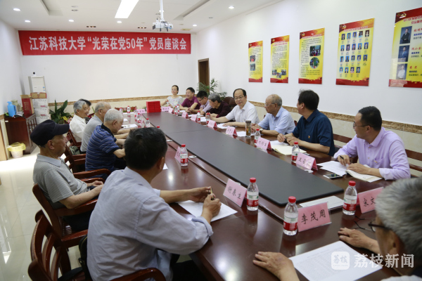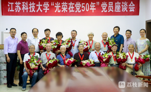 6月9日,江苏科技大学离退休党工委举行“永远跟党走——光荣在党50年”老党员座谈会。学校党委副书记许俊华给12名老党员代表颁发了“光荣在党50年”的纪念章。