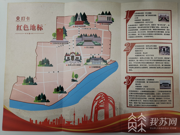 前期,海门街道对辖区内的木行头纪念碑、三条桥党支部纪念碑等6个红色地标进行了摸排,并绘制了红色地标打卡地图。近日,街道印制了两万册的“红色地图”,发放到各村居、“两新”组织的“红色驿站”,成为辖区广大党员群众开展党史的“口袋书”和“指南针”。