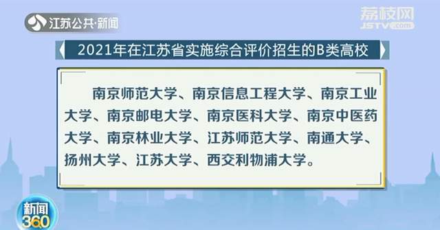 今年,江苏省综合评价招生B类高校共12所:南京师范大学、南京信息工程大学、南京工业大学、南京邮电大学、南京医科大学、南京中医药大学、南京林业大学、江苏师范大学、南通大学、扬州大学、江苏大学、西交利物浦大学),主要采取面试方式。