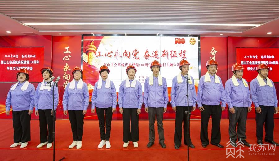 这次宣讲会主题为“工心永向党、奋进新征程”,是惠山区总工会庆祝建党百年的重要活动之一,也是面向全区职工进行“四史”教育的开篇之作。为了让“四史”教育特别是党史学习教育切实扎根在基层,区总工会在宣讲现场成立了“红色蓝领文艺轻骑兵”和“工心向党四史宣传队”,他们将在区总工会的统筹指导下,围绕庆祝中国共产党成立100周年,结合惠山区产业工人队伍建设改革,深入到企业车间班组,灵活机动地以广大职工喜闻乐见的文艺形式,与职工面对面开展“四史”微宣讲,推动党史学习教育深入群众、深入基层、深入人心,进一步引导职工群众学史明理、学史增信、学史崇德、学史力行,激发起为惠山区“五地四创”发展做贡献的工人阶级澎湃力量。