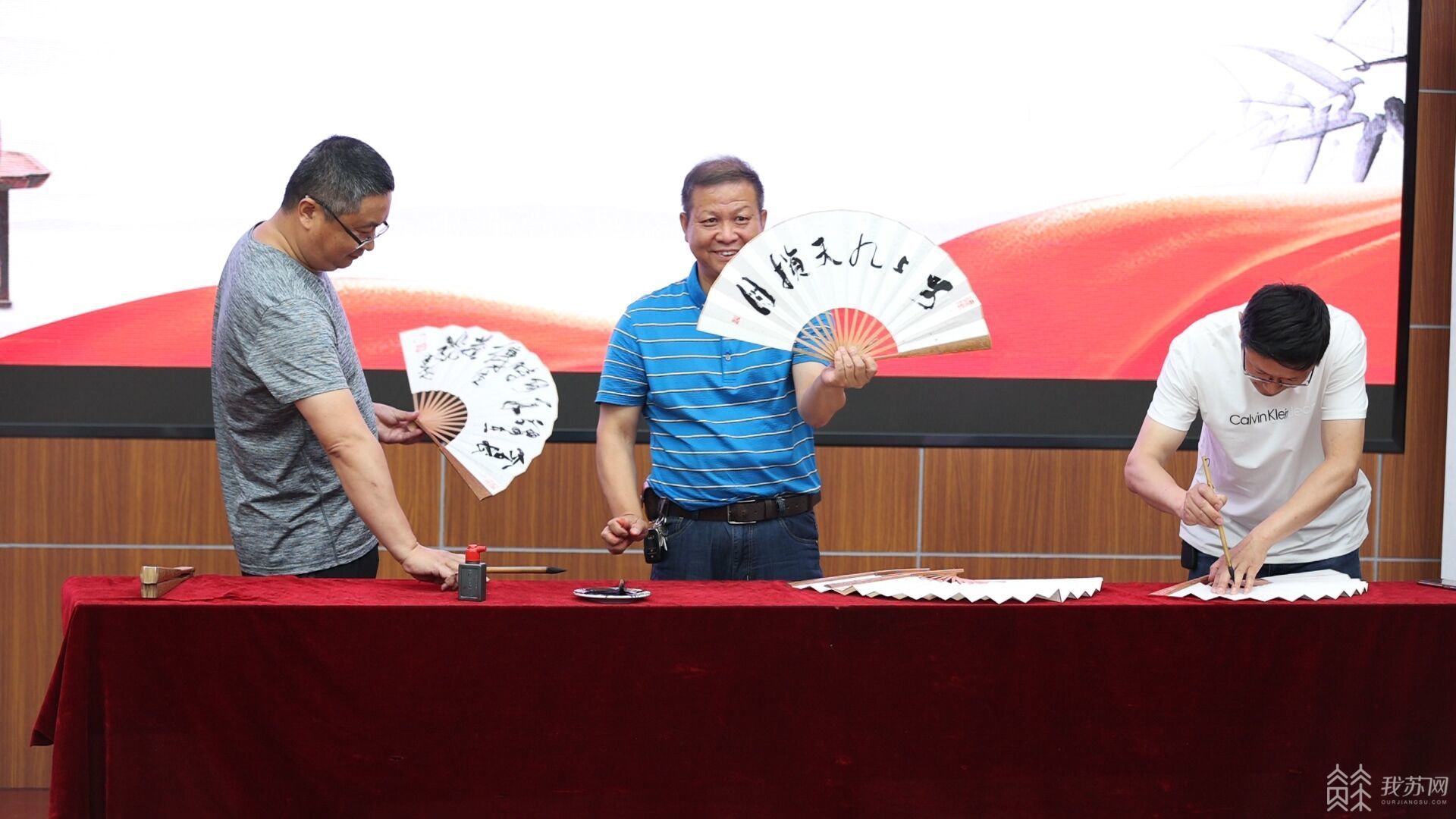 无锡市最美志愿者、江抗纪念馆讲解员、嵩山村老书记许若宗先生为大家娓娓讲述江抗纪念馆的红色经典故事。通过追忆厚桥人民的革命奋斗史,弘扬铁军精神,激活人们心中流淌着的红色血脉,鼓励人们发扬无畏艰险的革命精神。由锡山区星韵艺术团自主编排的情景剧《初心》,讲述了疫情斗争中很多90后新生代党员站出来挑起了重担,不忘初心,牢记使命,参与疫情防控志愿服务的故事,展现了新时代志愿者抗击疫情的风貌与精神。江苏好人、厚桥街道谢埭荡村防汛志愿者朱长度讲述二十载守护低洼村防汛一线的故事,彰显榜样力量,弘扬催人奋进的时代担当精神。此外,辖区书法爱好者还现场进行书法表演,于扇子上书写党史金句、道德名言等,以书法的形式将党的祝福和温暖传递给大家。