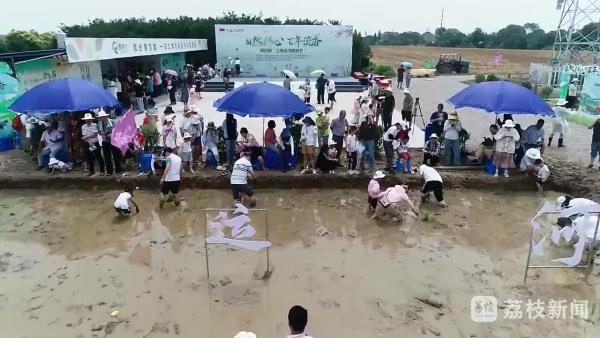 除了下田插秧,现场还设置了摸鱼比赛、包粽子等活动,妙趣横生的劳动体验让这个端午更意义。