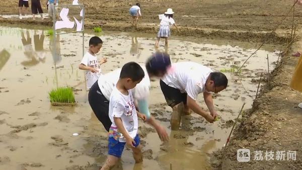 手把青秧插满田,低头便见水中天。在邹区镇泰村村的一片稻田里,来自全市200多个亲子家庭,正在体验农耕文化。家长带着孩子,挽起裤腿猫着腰,忙着插秧。