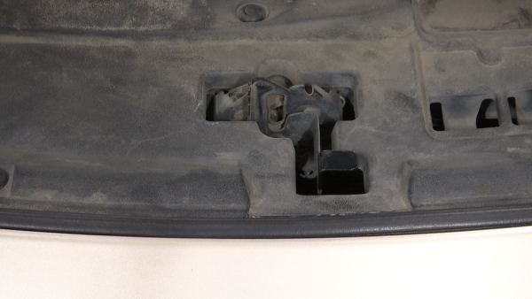 看完左右车身,还需要检查一下车辆的前部是否发生过碰撞。一般来说,保险杠之类的塑料件并无大碍,主要要看车辆骨架有没有威胁过的痕迹,比如发动机舱盖,如果进行过钣金,这边的胶条的胶体容易出现开裂。另外,还有一个最有效的方法,就是查看发动机舱的锁扣螺丝,是否存在拆装过的痕迹,锁扣如果动过了,十有八九这辆车的水箱框架是被动过了。