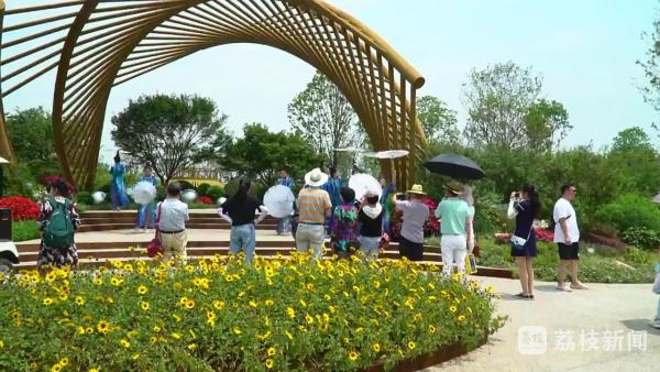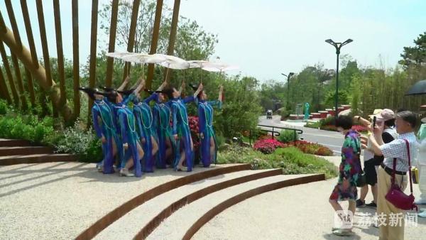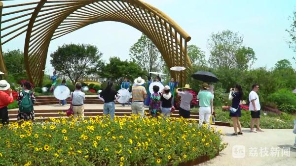 端午假期第一天,不少游客趁着假期来到世园会。在上海园门口,舞蹈演员们手持纸伞,随着音乐翩翩起舞,她们通过优美的舞姿,向游客展现了端午时节江南水乡的柔美。