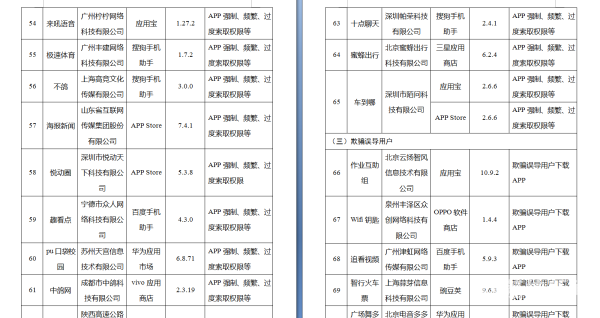 关于侵害用户权益行为的APP通报