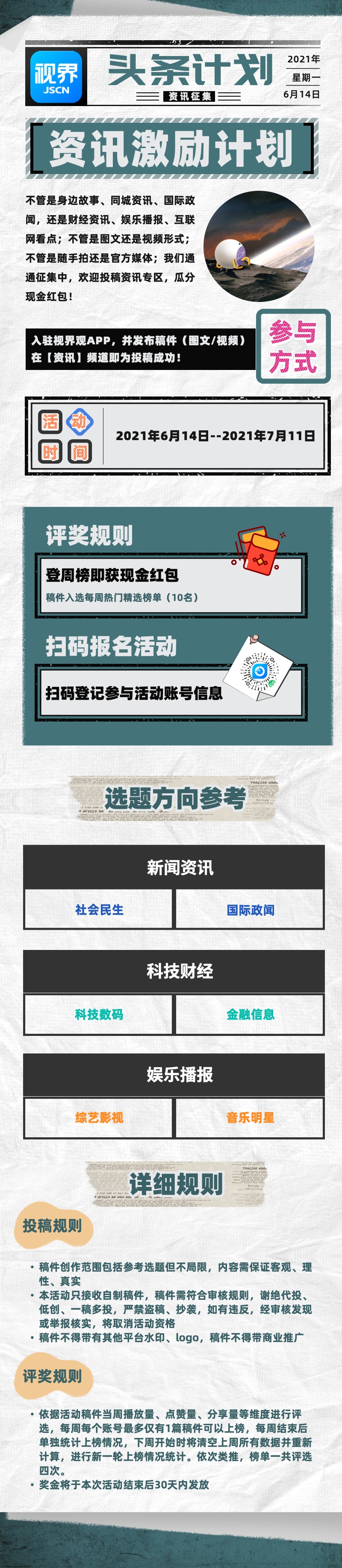 内容创作者是撑起内容生态的中坚力量,视界观APP陆续推出创作者扶持计划,帮助创作者寻找创作灵感,在平台实现自我提升与成长。优质内容是平台成为高质量入口的关键因素,为强化内容端布局,加强内容生态建设,视界观将于6月14日正式推出“头条计划——泛资讯内容激励”创作者扶持计划,具体内容如下: