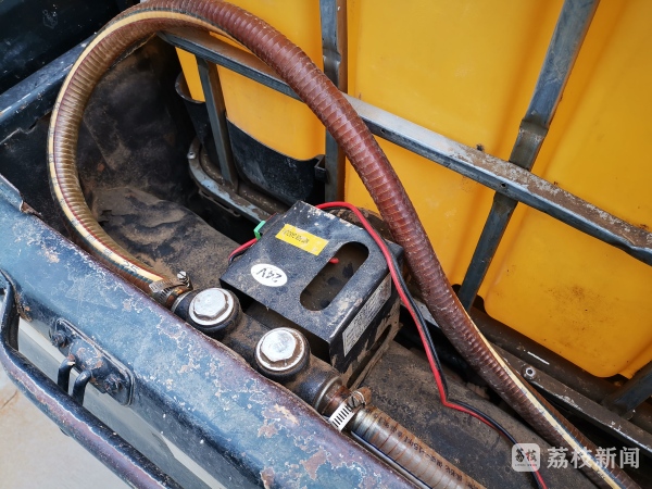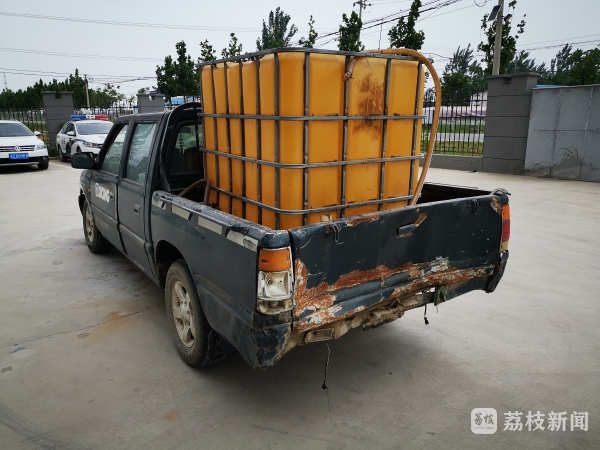经对车辆检查,该车例行检查后发现,车上没有粘贴有效的年检标志和保险标志,且车厢内装有一大型塑料桶(容量1000升),装有加油设备一套,桶内还盛有少许柴油,散发着浓重的柴油味。