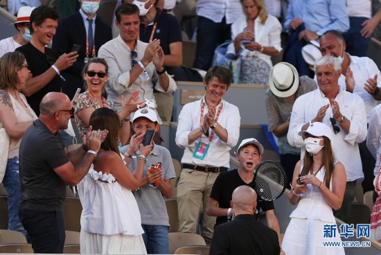 当日,在巴黎进行的2021法国网球公开赛男子单打决赛中,塞尔维亚选手焦科维奇以3比2战胜希腊选手齐齐帕斯,获得冠军,赛后他将球拍送给了一名场边的小球迷。