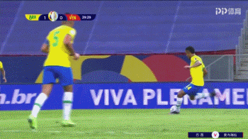 在达尼洛创造点球后,属于内马尔的时刻到来了。内马尔的进球,是他标志性的小碎步点球。这是内马尔为巴西打进的第67球,他距离贝利的历史纪录只差10球。