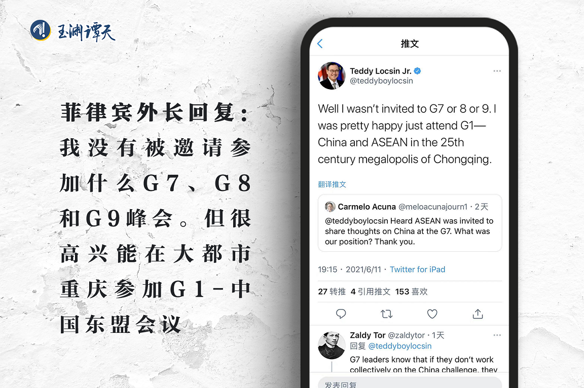 G7期间,有网友称东盟受到G7峰会的邀请,并在会上分享了对中方的看法。但菲律宾外长洛钦否认了这一说法。