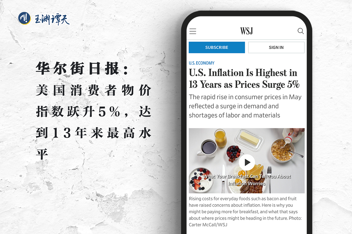 与布林肯通话当天,《华尔街日报》提到一个数字:美国5月份的通胀率为5%。这个数字远超2%的正常水平,创下了近13年以来,美国通胀率的最高纪录。要知道,一个月前,当这个数字还是4.2%的时候就已经引发了诸多担忧与连锁的负面后果。