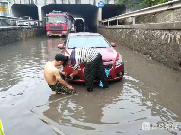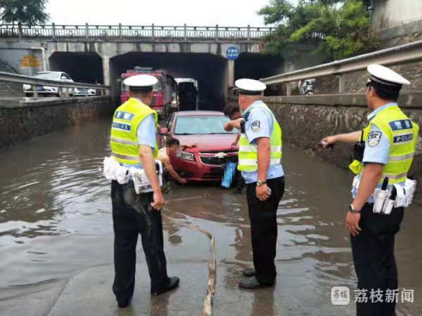 我苏网讯 6月13日下午17时许,受大雨天气影响,徐州市淮海国际港务区华润路段一个地下通道出现大面积积水,导致大量车辆堵塞交通,港务区大队二中队民警冒雨对被困车辆进行紧急救援。