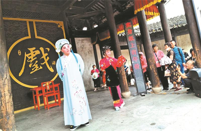 惠山古镇绣嶂阁内,无锡市锡剧院带来的经典选段《秋香送茶》,赢得观众阵阵掌声。