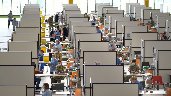 △英国接种疫苗工作场景(图片来自英国天空新闻)