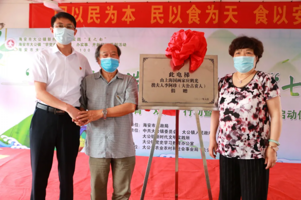 6月11日上午,大公镇党委负责人率队到古贲敬老院,为老人们送去一份特殊的端午节礼物。此前,上海国画家应鹤光、李阿珍(古贲人)夫妇捐赠20万元为古贲敬老院安装一部电梯。当天的电梯落成仪式上,应鹤光、李阿珍夫妇获颁“最美大公人”奖杯及荣誉证书。