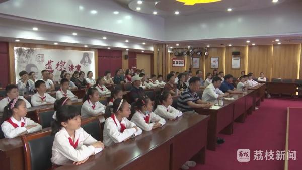 今天(6月14日)上午,新安小学的学生们乘着端午假期,在老师的带领下,来到淮安市淮安区淮城街道恩来社区的道德讲堂,为这里的老党员、社区居民讲述着新安旅行团的红色故事。