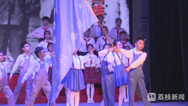 与此同时,同学们自编自演的一场以学习实践习近平总书记回信精神,赓续爱国奋进情怀为主题的演出活动正在新安小学的小好汉剧场内举行,《新旅抗日战歌》《新安进行曲》……同学们用铿锵有力的歌声与抑扬顿挫的诗朗诵,把那个在战火纷飞的年代,新旅前辈们为宣传抗日救国而四处奔走的情形,又呈现在大家眼前。