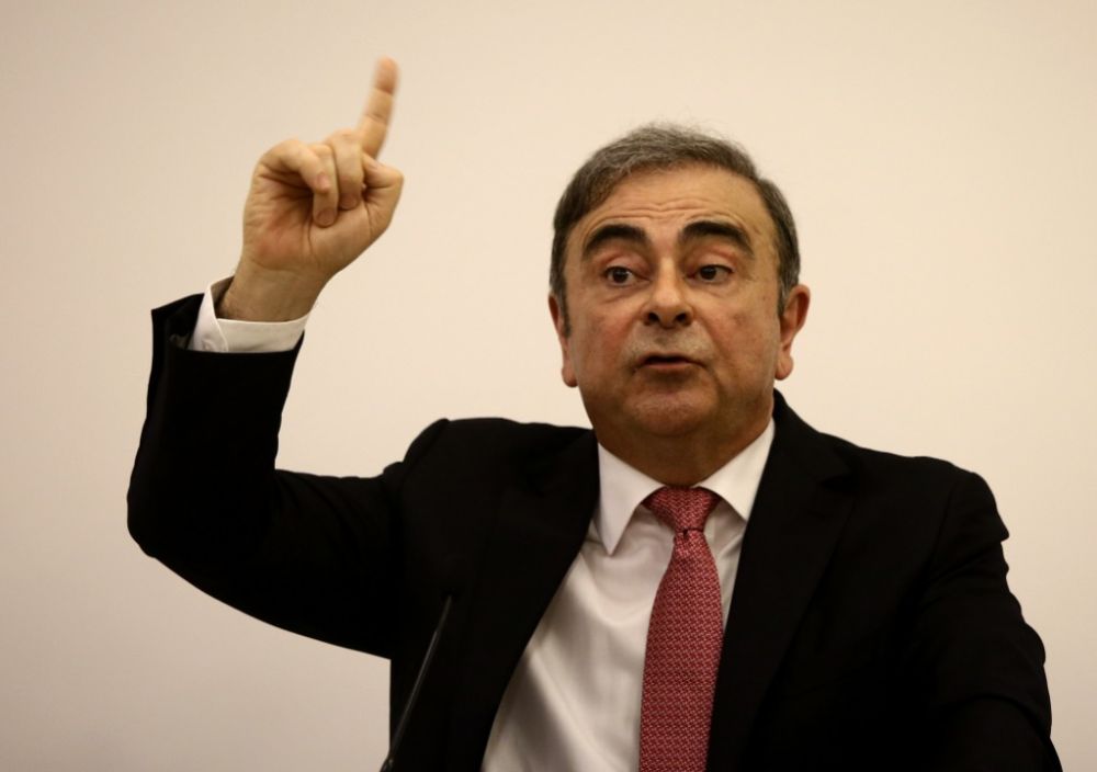 2020年1月8日,在黎巴嫩首都贝鲁特,卡洛斯·戈恩在记者会上发言。(新华社发,比拉尔·贾维希摄)