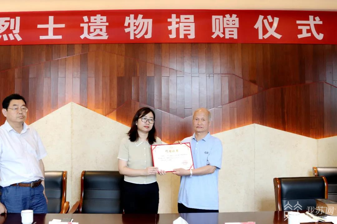 在太华山新四军和苏南抗日根据地纪念馆,举行了张西烈士遗物捐赠仪式。太华成校校长董明华代表太华山新四军和苏南抗日根据地纪念馆接受张西烈士遗物捐赠。