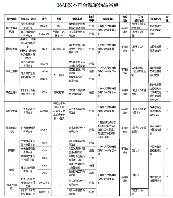 国家药监局关于16批次药品不符合规定的通告(2021年第36号)