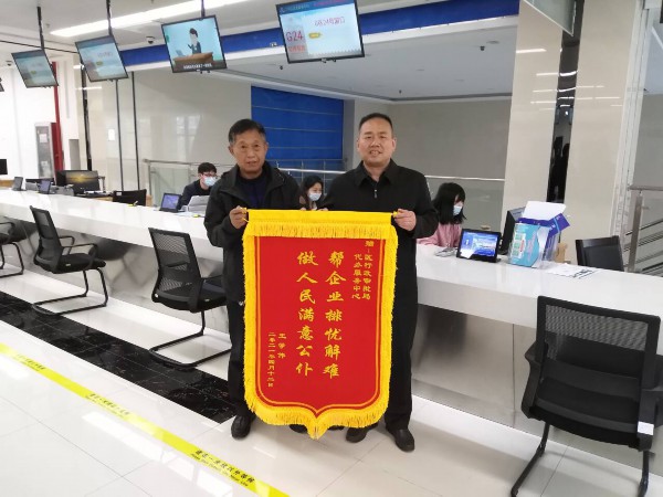 客商王先生给洪泽行政审批局代办中心窗口送锦旗