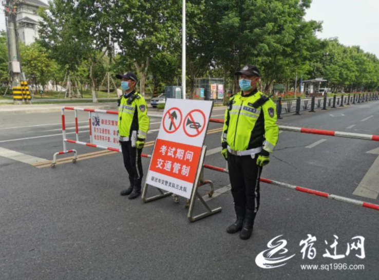 宿迁市公安局交警支队二大队湖滨中队指导员杨金昆表示,考试期间内,交警部门在钟吾国际南门东口和西口进行交通管制,也就是在发展大道与榉树路、迎宾大道与榉树路进行交通管制,在优先保证送考车辆、警车、消防车的通行以外,禁止所有车辆驶入,保证考生良好、安静的考试环境。