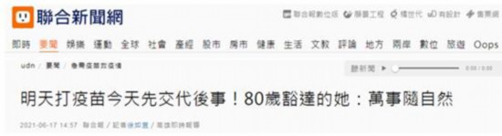 对于80岁老人打疫苗前交代后事,有岛内网友感叹:打阿斯利康疫苗就像赴刑场。↓