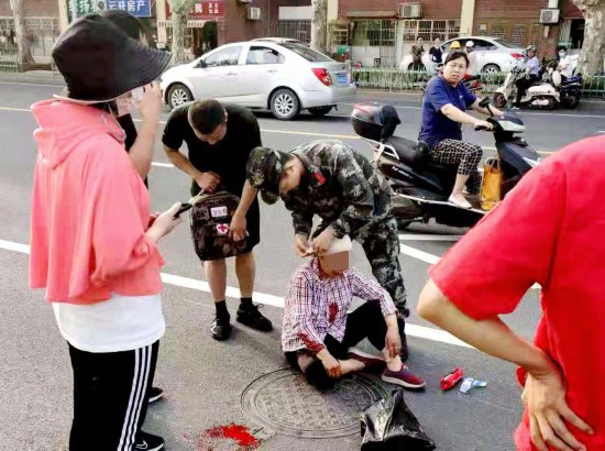 险情就是命令。代鹏一边下达施救命令,一边让现场的战士报警。不到一分钟,代鹏就带着两名战士赶到案发现场。原来,就在营区外的马路上,一辆电动车不慎撞到一名老人,老人随即倒地不起。