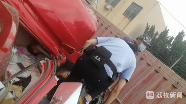 6月16日下午2时许,徐州市公安局铜山分局茅村派出所民警正在茅村镇前川村路口处理一起纠纷警情时,突然发现不远处有两辆大货车发生了迎面相撞的交通事故。