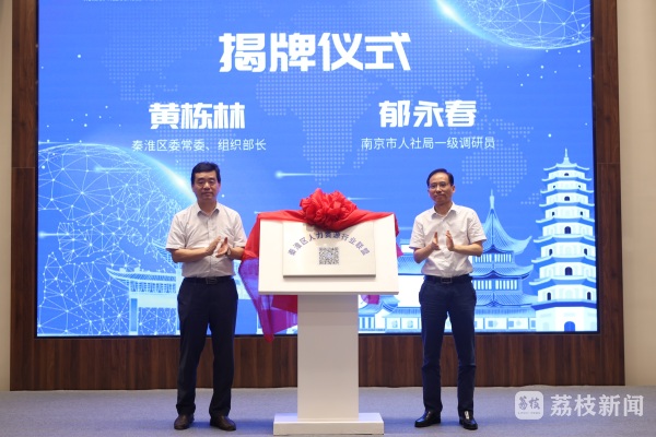 6月17日,南京市人社局一级调研员郁永春和秦淮区委常委组织部部长黄栋林共同为“秦淮区人力资源行业联盟”揭牌。